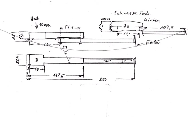 Länge der Taste bis zur hinteren Feder 248mm