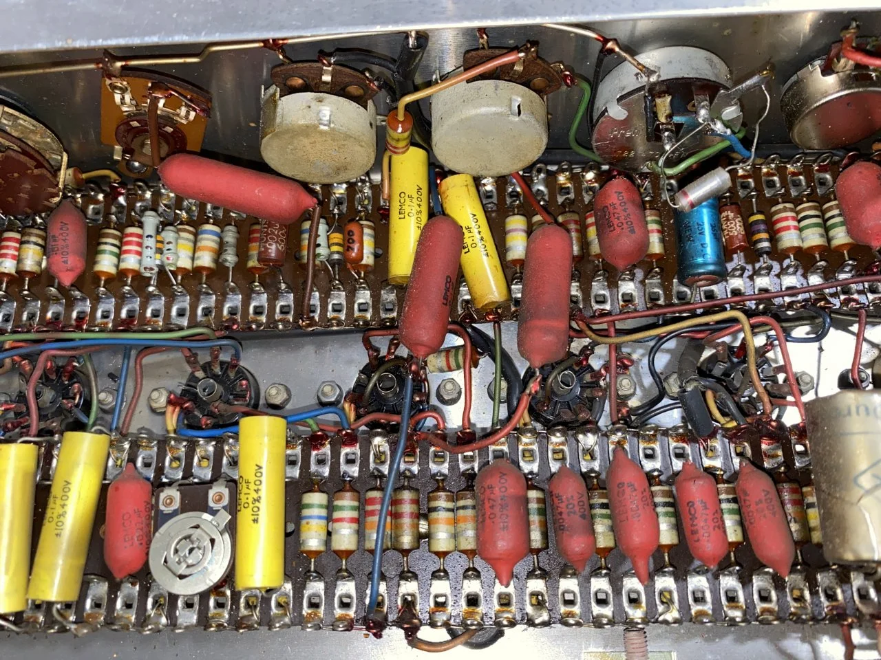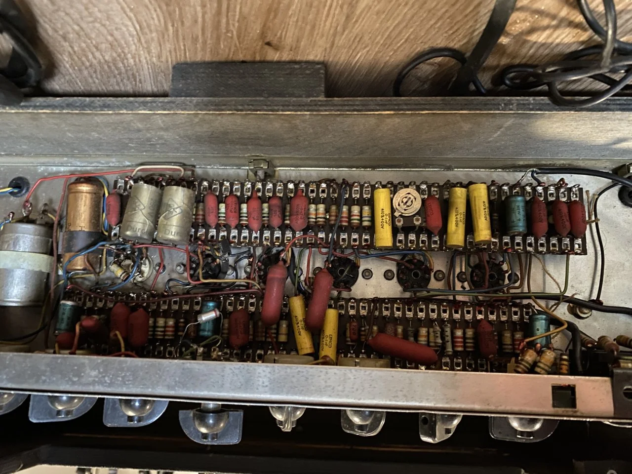 ich bin durch Zufall an eine altes AC30 Super Twin Topteil gekommen. Es wurden Löcher hineingebohrt, die Frontbespannung mit einer Sprühdose misshandelt und laut Vorbesitzer funktioniert der Amp auch nicht mehr. Der Plan ist jetzt also, es komplett wiederherzurichten. Damit sich das mein Elektroingenieurskumpel mal anschauen kann hätte ich gerne einen Schaltplan davon aber ich konnte noch nicht ganz rausfinden, welches Baujahr es ist. Ich denke 1964, lass mich aber gerne eines besseren belehren: