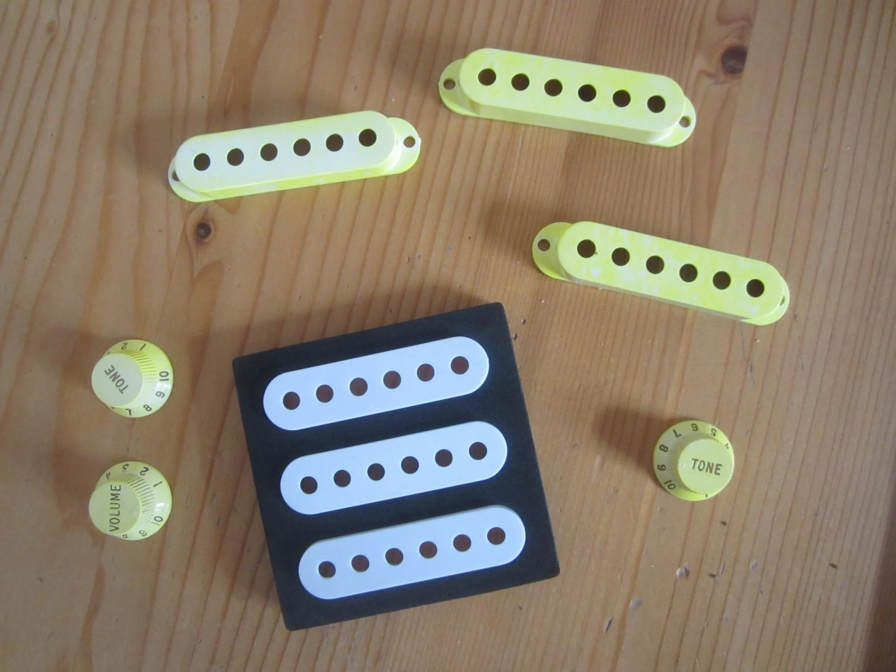 bin ja echt kein Relic Freak oder so, aber habe mal trotzdem die weißen Plastikteile meiner Strat in Bier-Curry-Schwarztee gemisch eingelegt
