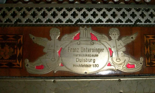 "JackR" besitzt eine im Jahr 1900 gebaute "steirische Harmonika". Laut Platte am Gehäuse ist der Erbauer Franz Untersinger. Über diesen lässt sich aber leider im Netz nichts finden. Wen also ansprechen? Nur 2100 Meter von der Werkstatt entfernt war in Duisburg auch noch Anton Grebien aktiv, vielleicht ein Querpass? Auch am Instrument finden sich einige Besonderheiten. Innovative Idee im Jahre 1900 oder später durchgeführte Anpassungen. Sherlock Holmes - your case!