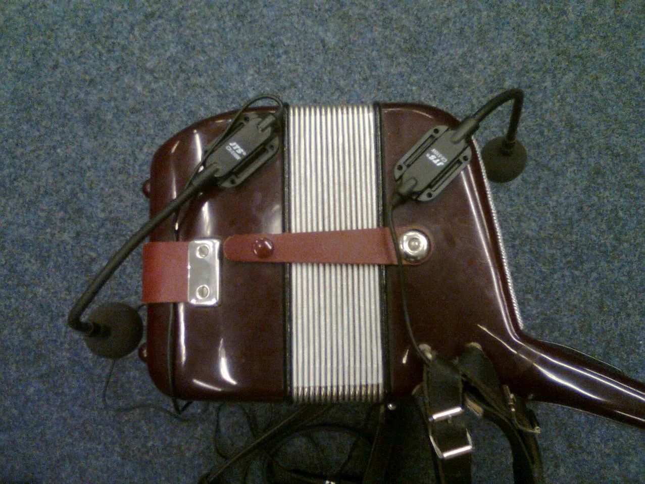 Ein professionelles System kostet mit Einbau ca. 500€ und sitzt unter dem Diskant, unsichtbar bis auf den Anschlusstecker, der vorne unten an der Chromblende unscheinbarer wirkt als ich angenommen hatte. Ein Akkordeon-Bauer, der das schon x-Mal eingebaut hat weiß, besonders bei seinen Instrumenten, die er verkauft, wo und wie er die Verkabelung unscheinbar befestigt, dass es später keine Ausfälle durch lösende Kleber, spannende Kabel, Wackelkontakte oder Rückkopplungen gibt, außerdem kann er je nach Akkordeon-Länge, die Mikrofone auf eine vernünftige Anzahl anpassen.