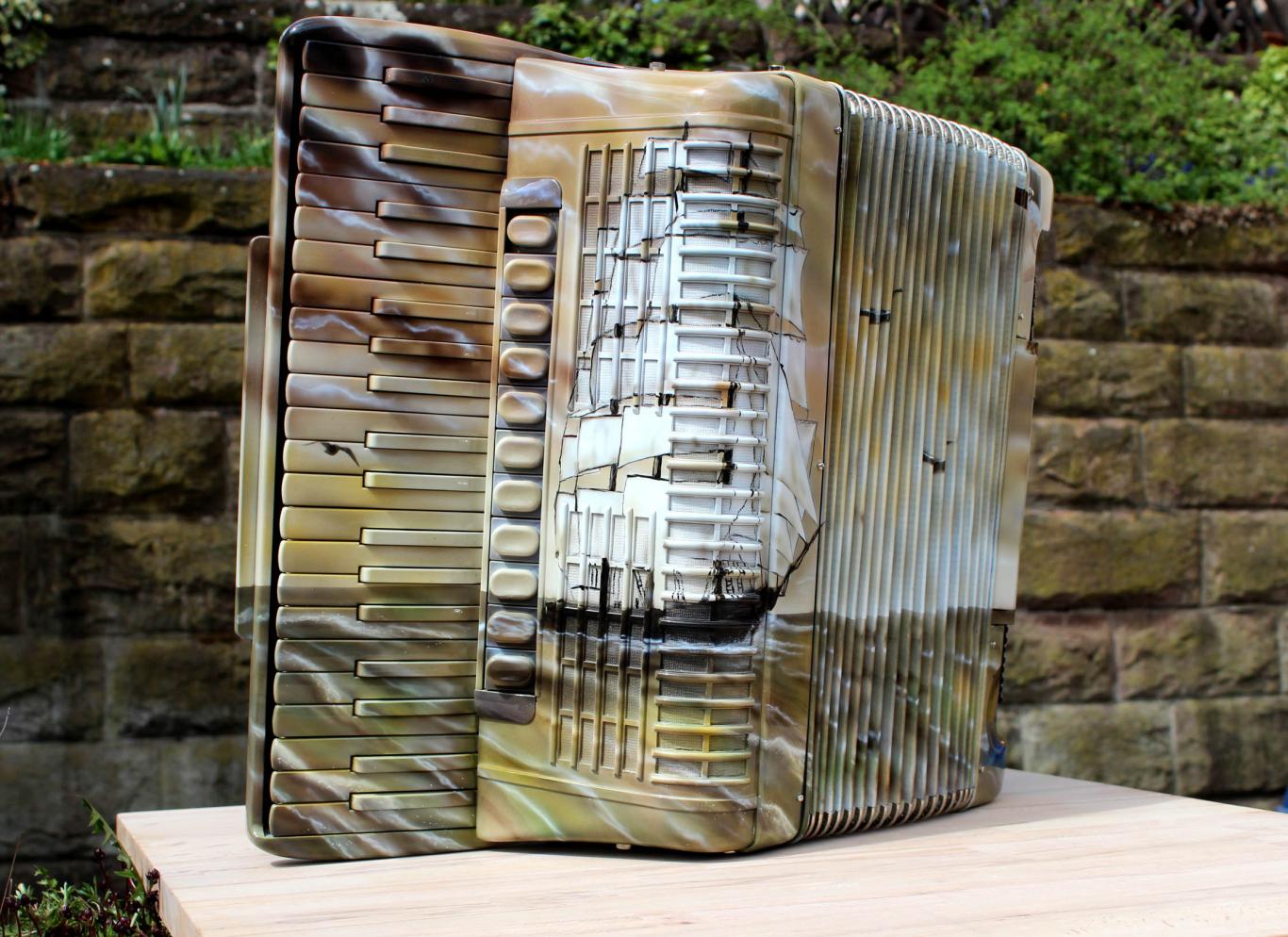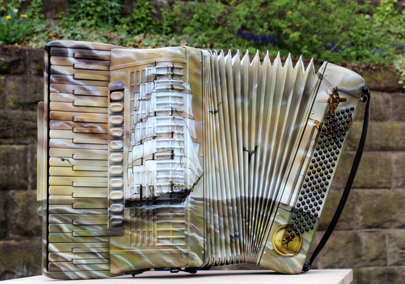 Danke @ geobur, natürlich geht ein Shantychor, der in unseren Breiten meistens Seemannslieder singt, nicht ohne Akkordeonbegleitung. Vor Jahren spielte ich hier mal ein tolles weißes 72er Akkordeon. Unsere Sänger haben das wohl registriert, aber nicht das Publikum.