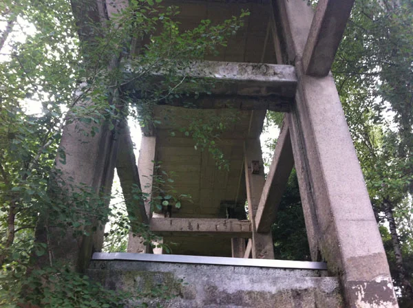 Weil aber unsere Hügel nicht hoch genug waren, hat man auf einen derselben noch eine Art Autobahnbrücke drauf gesetzt. Da konnte man dann mit einem Jeep rauf fahren und die Radaranlage ausfahren - alles streng geheim.