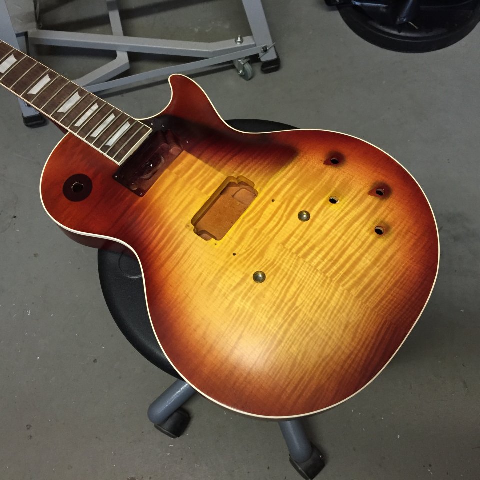 Pseudo sind 99% aller Gibson Gitarren, die den Custom Shop verlassen. Die ganzen heute ausgelieferten Lackierungen gab es so früher nicht. Die sind alle durch das Ausbleichen der Ursprungslackierung entstanden. Da ist meine also weitaus weniger Pseudo, als fast alles derzeit erhältliche. Ich versuche nur das Altern der Gitarre zu beschleunigen. Echtes Fading durch UV-Strahlung, echte Lackrisse durch Kälteeinwirkung, hier und da noch ein paar kleine Macken und fertig ist die Optik einer 50 Jahre alten und wenig gespielten Gitarre. Das geht aber nur, wenn man weitestgehend historisch korrekte Materialien verwendet.