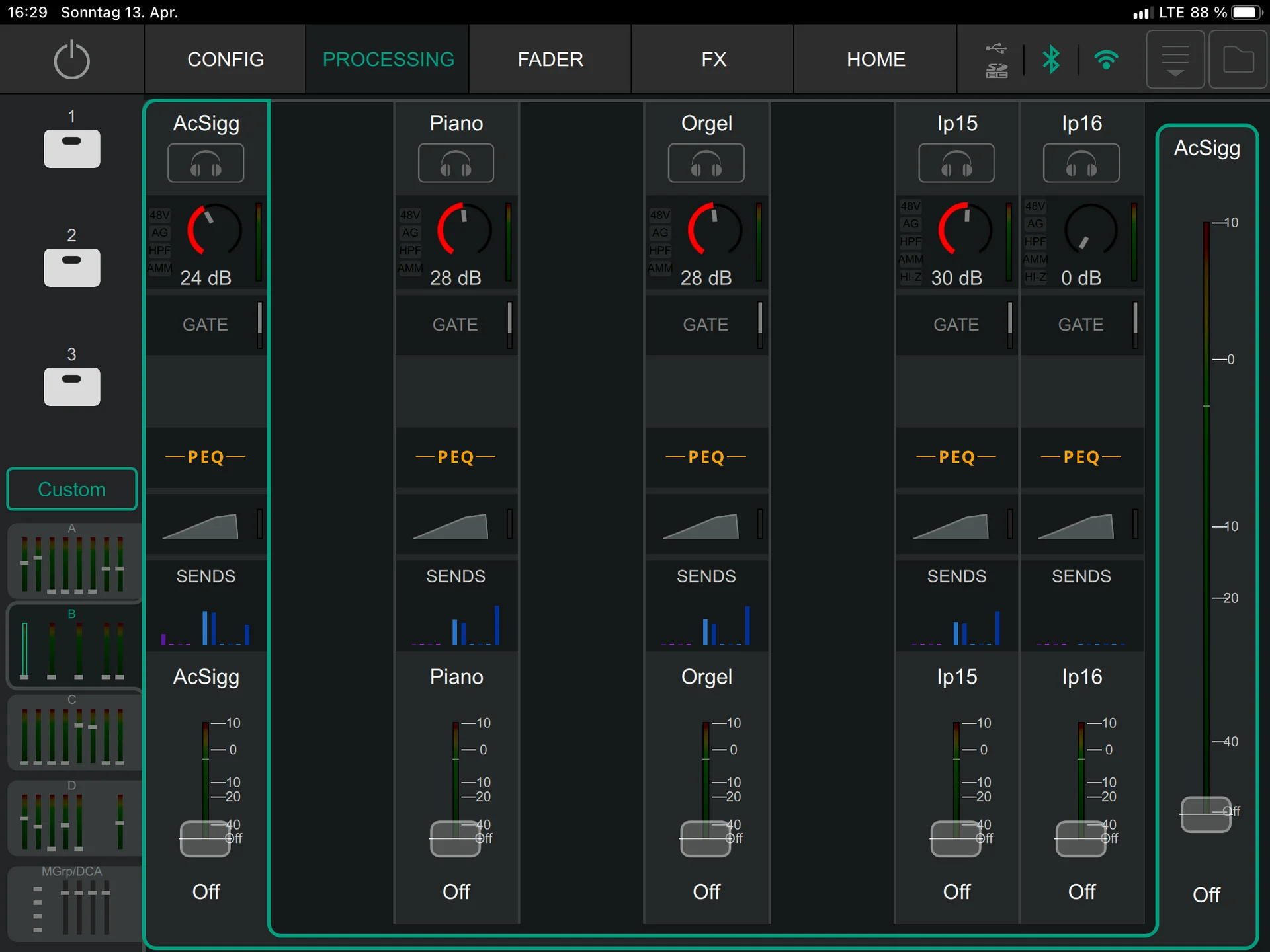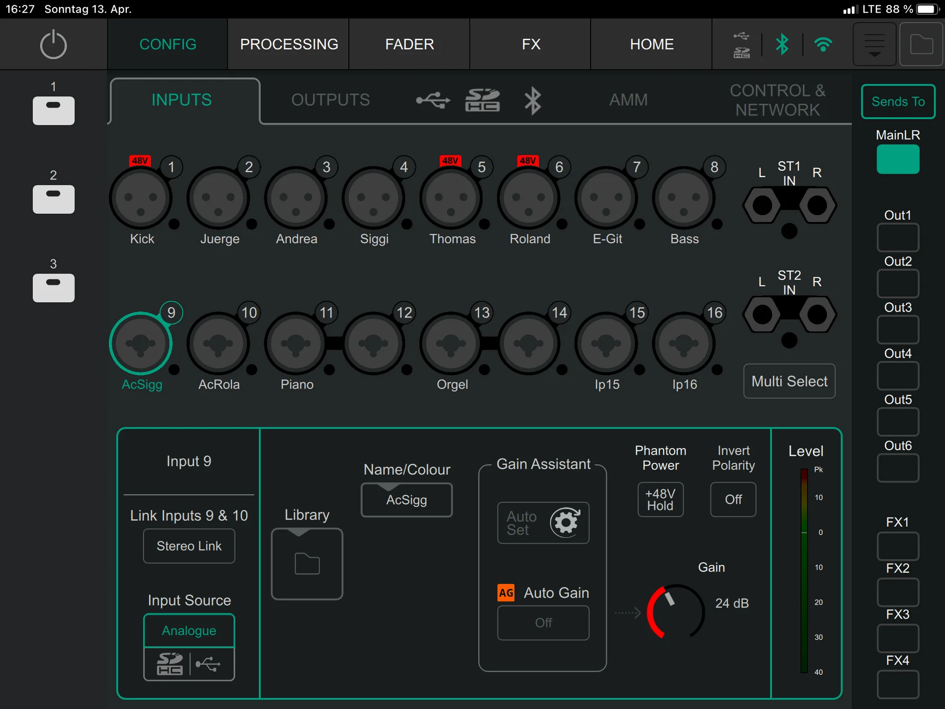 Wie man auf Bild 1 sehen kann, sind Kanal 9 und 10 nicht gelinkt, in der Processing und Fader-Ansicht fehlt der Kanalzug: