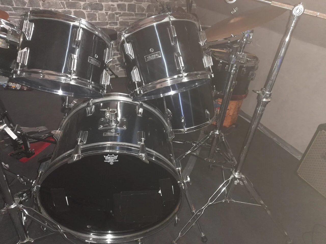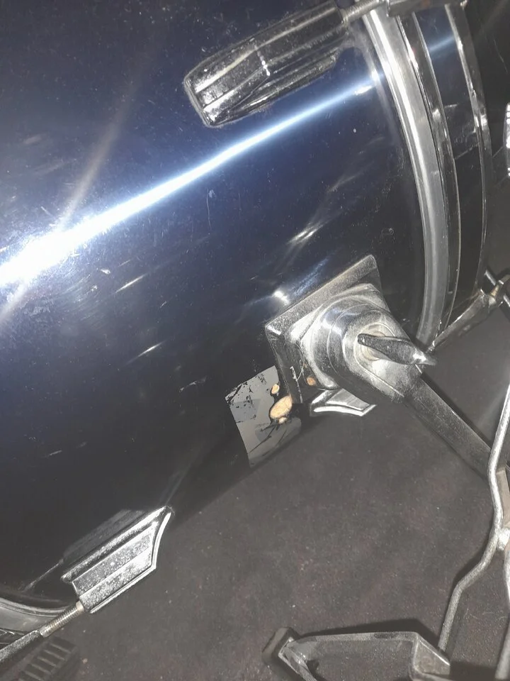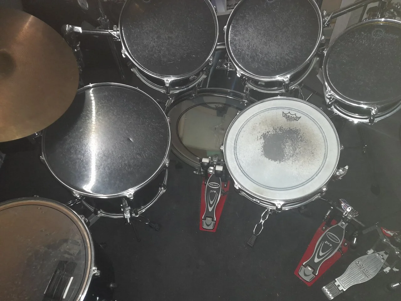 ich habe seit mittlerweile schon knapp 6 Jahren ein altes Schlagzeug rumstehen, möchte es aber nun wieder aktiv spielen. Es ist ein "Hoshino Professional", das einzige was ich weiß ist, dass das Set gefertigt wurde, bevor die Firma Hoshino zu Tama wurde, das Set müsste also ungefähr aus den 80er Jahren Stammen, zumindest wurde mir das mal so von dem ehemaligen Besitzer erzählt. Äußerlich ist das Set in einem recht schlechten Zustand, die Starke Patina macht mir grundsätzlich nichts aus, allerdings ist die Folierung der Kessel an einigen Stellen mit starken Rissen oder Kratzern versehen und an einigen Stellen (keine Ahnung wieso) befinden sich Reste von Klebeband bzw. Gaffatape/Panzerband. Zudem sind in der Basedrum links und rechts jeweils 3 (gebohrte) Löcher, es sieht so aus als wären mal andere Füße daran montiert gewesen und die neueren Füße wurden einfach daneben montiert.
