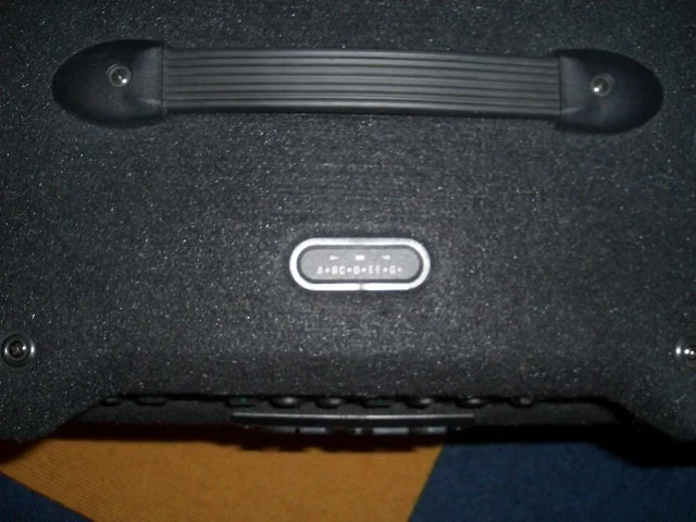 Der Klang ist im Allgemeinen sehr gut. Mit dem Equalizer ist man sehr flexibel und man kann sämtliche Stilrichtungen damit einstellen. Mit einem Knopfdruck kann man dann auf Distorsion umschalten, was den Sound ziemlich verzehrt. Mit der Distorsion kommt man auch lauter rüber als im Clean-Modus. Die Potis werden wie folgt benannt: