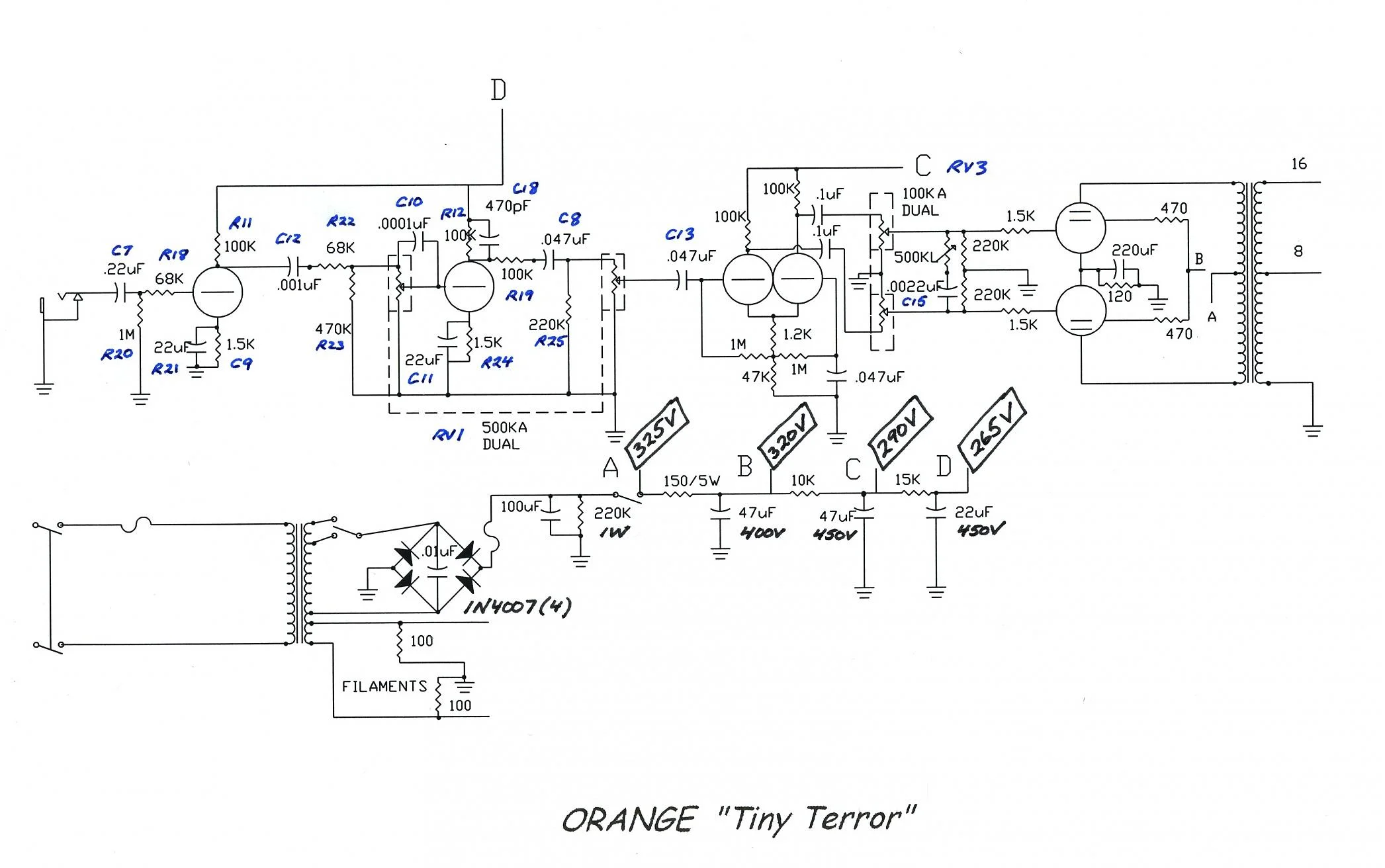 Für mich ist das ein idealer Proberaum-/KleinStage-/Studio-AMP für klar definierte Sounds. Und OnStage? Warum nicht mehrere auf der Bühne stellen, vielleicht einen getunten mit 220pF - 470pF Kondensator für hellere Sounds? Dem versierten Profi und Liebhaber sollte alles leicht fallen. Leider fehlt mir die Gelegenheit, den mal richtig aufzureißen. Da kommt er so richtig, an der PPC112 als auch an anderen Boxen. Die 7 - 15 Watt können ganz schön laut sein. Und wie bereits erwähnt: die PPC112 Box ist recht solide, hat einen modernen Sound und bietet mit dem Orange Tiny Terror eine ideale Kombination. Sie deckt den Sound von heute und gestern gut ab.