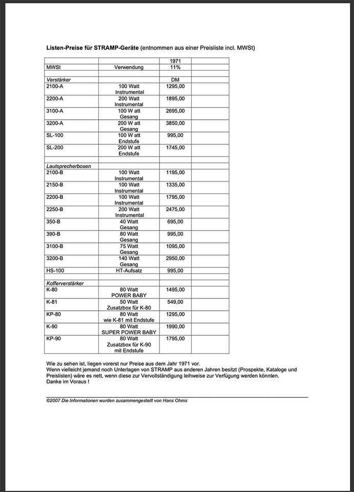 Während in Wikipedia steht „Marshall 1959 was produced from 1965 to 1976“ mit Bezug auf Blue Book of Guitar Amplifiers, Zachary R. (2008). Blue Book of Guitar Amplifiers. Vol. 3. Alfred Music. pp. 335–36, wird in The History Of Marshall - The First Fifty Years, Michael Doyle & Nick Bowcott (2013) auf Seite 133 für die Originalversion (im Gegensatz zu Reissues) 1966 – 81 aufgeführt. Bei dem von Uwe R. bzw. Stratomano im Forum abgebildeten Schaltplan „Type #2 C. 1967“ handelt es sich laut Doyle & Bowcott 2013, Seite 130 um Model 1959 Version 6, laut Seite 129 „JMP Superleads with new Power Supply, Last Superleads with Old Preamp (Late 1967)“. Dass es sich bei dem Schaltplan im Forum nicht um das Modell 1967 (Major Lead mit 200 Watt) handelt, ist leicht daran erkennbar, dass auf dem Schaltplan „100 Watt Amplifier“ steht. Der im Forum abgebildete Schaltplan für Modell 1959 ist dagegen von July 1970. Da bereits für das negative Feedback als Widerstand 100k eingetragen sind, handelt es sich wahrscheinlich um Model 1959 Version 10 („End of Plexis: Aluminium Panel Era“ 1969 – , Doyle & Bowcott 2013, Seite 132). Demnach entsprechen die beiden im Forum abgebildeten Schaltbilder nicht unterschiedlichen Marshall-Modellen, sondern unterschiedlichen Versionen des Marshall-Modells 1959 aus verschiedenen Jahren. Daher sprechen die Unterschiede bezüglich Stramp 2100A nicht für einen Mix aus verschiedenen Marshall-Modellen, sondern für einen Mix unterschiedlicher Marshall Model 1959-Versionen.