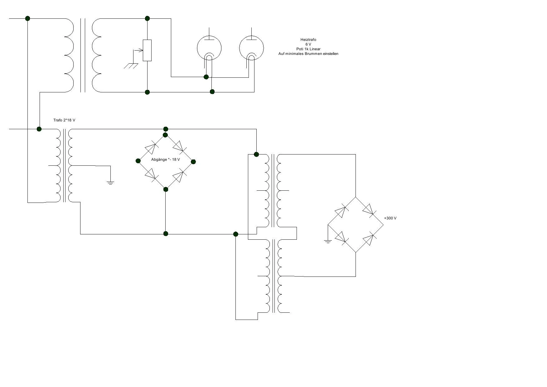 Ich vermute man könnte an den Anschlüssen "300V" und "Power Good" einen 300V Trafo anschließen um die 12AU7 Röhre mit der nötigen Spannung zu versorgen...