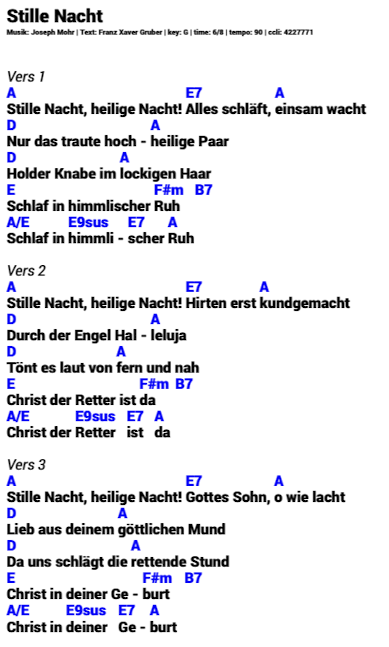 Hier mal "Stille Nacht", wie es dargestellt wird: