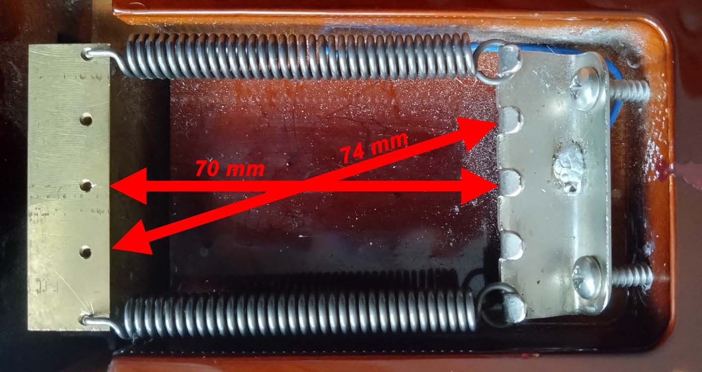 Ich würde dieses sehr gerne mal mit meinem ABM Katana Finetuner System ausprobieren, habe nur ein Problem: Das Tremmory "S" System hat eine Gesamtlänge von 71 mm -> mein Abstand von der Federkralle zum Tremoloblock beträgt bei 2 Federn 70 mm -> ich benötige jedoch für den Einbau lt. Hersteller mindestens 74-76 mm.