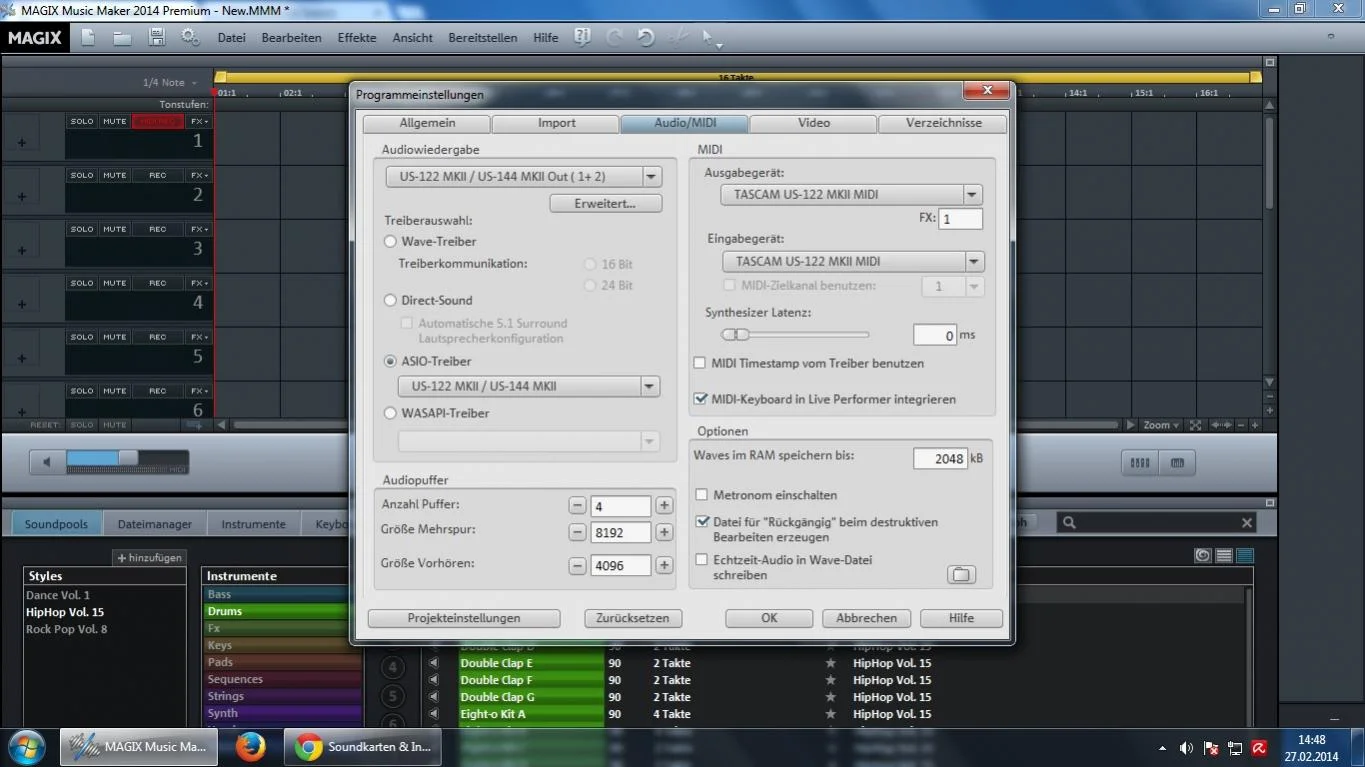 Als Aufnahmeprogramm verwende ich Magix Music Maker 2014 Premium. Die von mir verwendeten Einstellungen könnt ihr auf dem JPG-Foto ansehen: