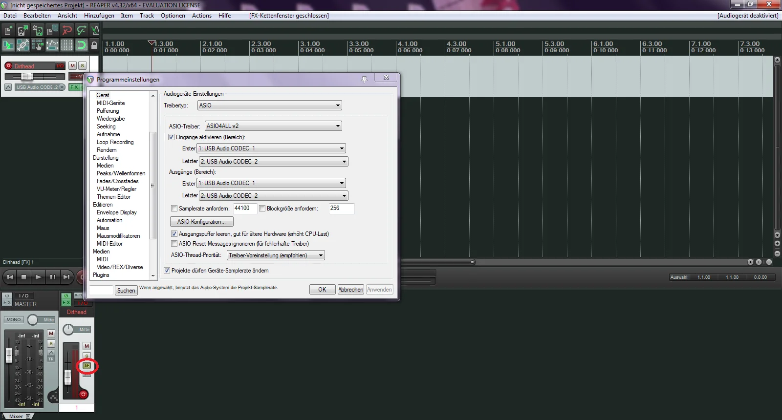 Aber dieser "USB Audio CODEC" ist eigentlich mein Eingang. CODEC 1 ist das Micro und CODEC 2 Line In.