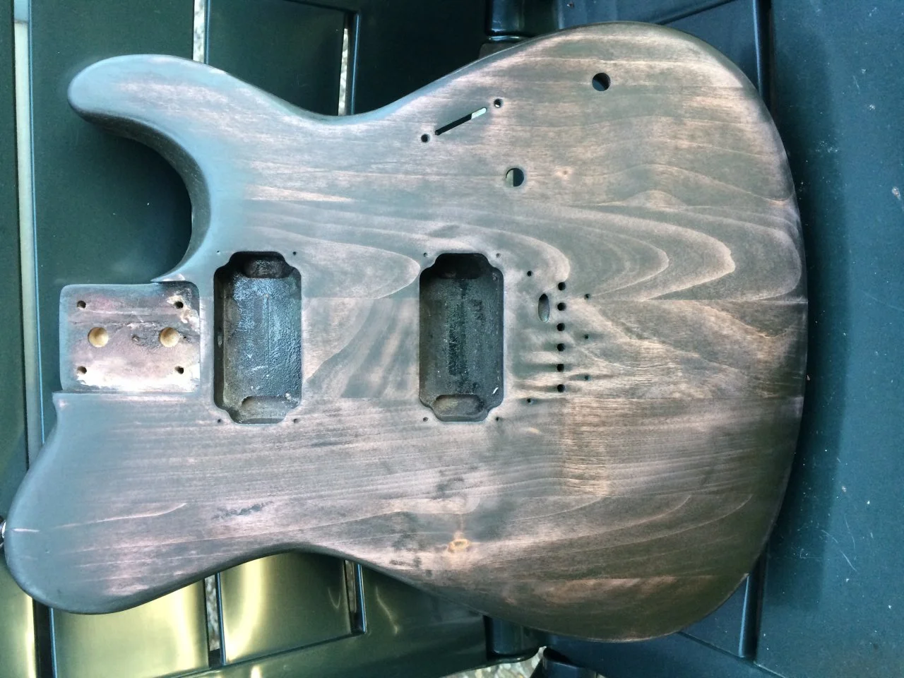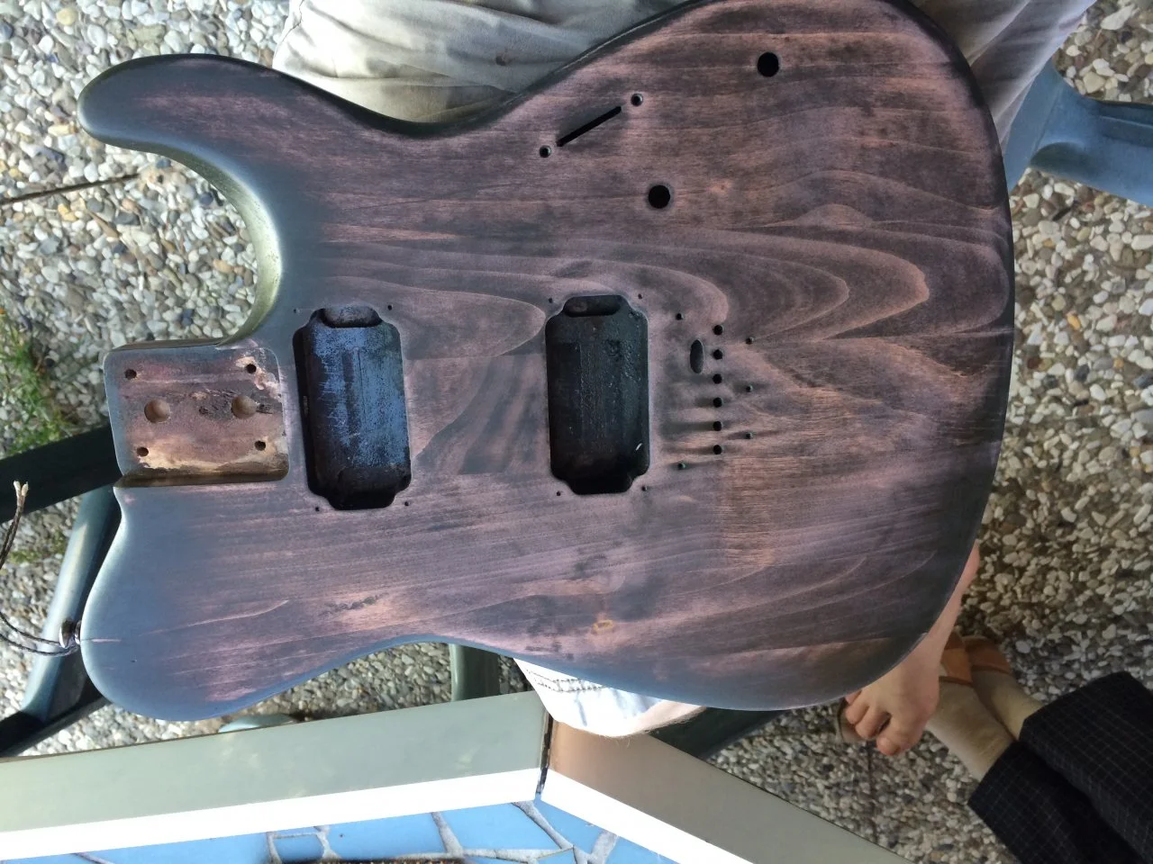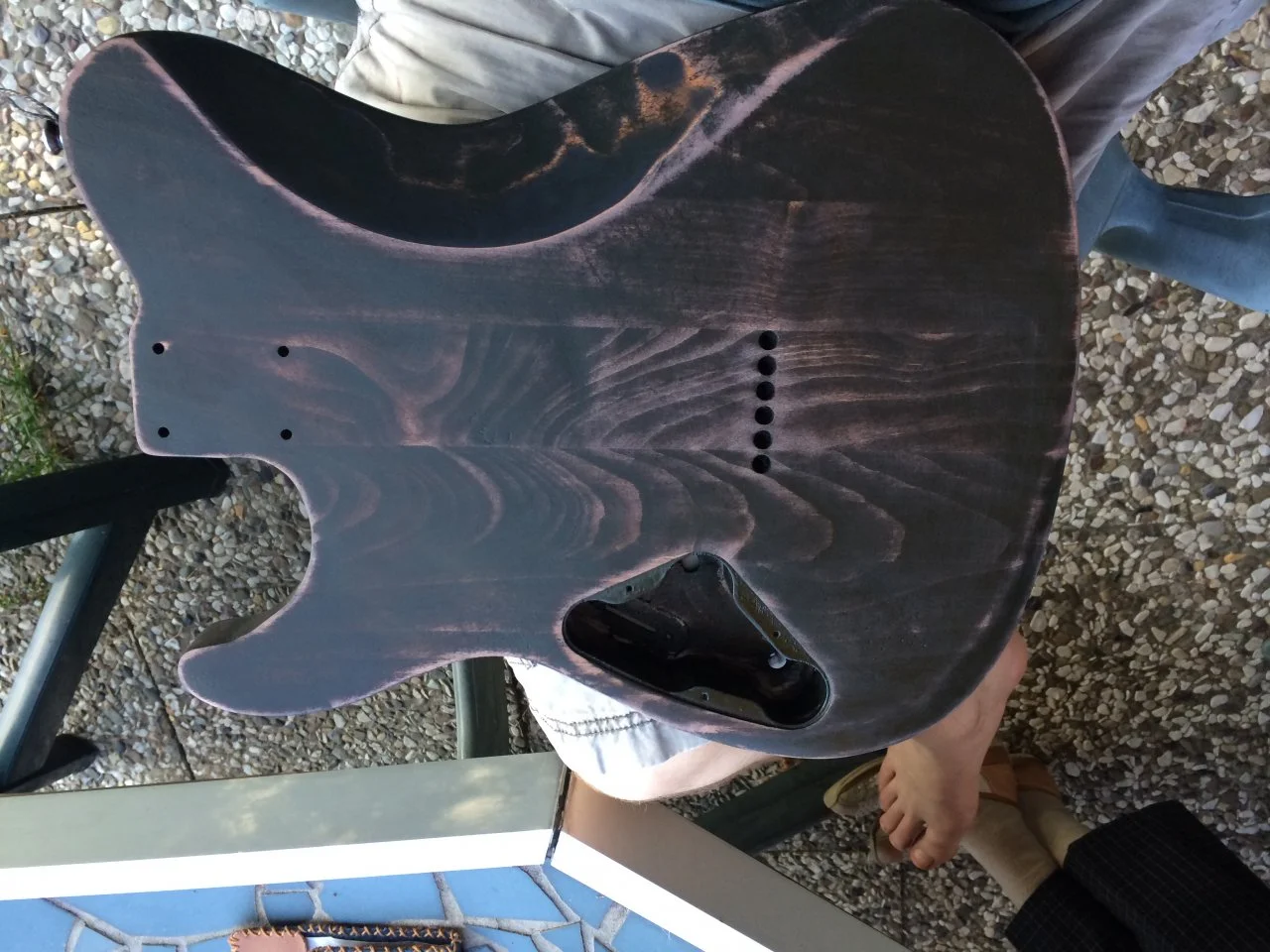 🙂 Sonst hät ich das Ding einfach wieder komplett abgeschliffen, bis dass schwarz/dunkel kaum bis gar nicht mehr zu sehen ist.Und am Cutaway/oben und auf der Armablage, wie es so aus dem Schwarz kommt, hab ich ja ganz gut geschliffen bekommen