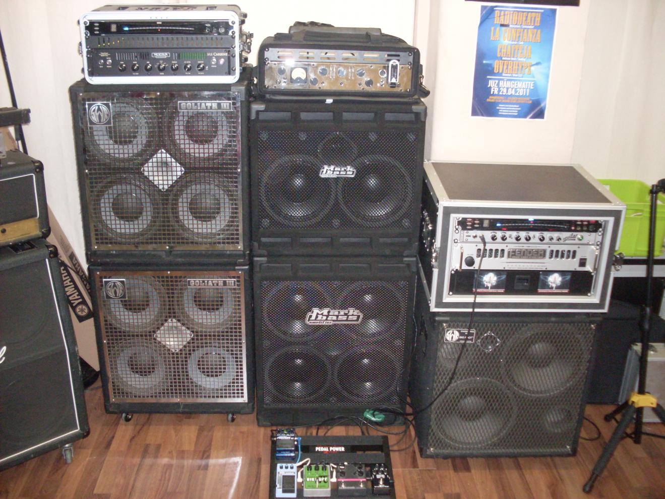 So, hier ist mal mein ganzes live-Zeugs auf einen Haufen... Nur noch die Rollen für die Markbass 4x10er fehlen noch