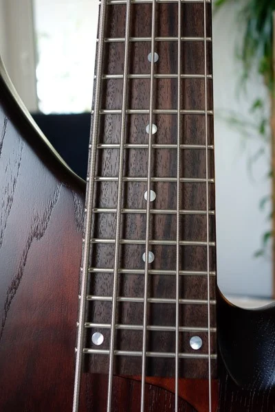 Mir macht der Arona jedes Mal Spaß, wenn ich ihn in die Hand nehme. Ich habe jetzt seit vier Wochen Bassunterricht und habe meine ersten Erfahrungen mit dem Instrument gesammelt. Der Bass ist sehr gut verarbeitet. Die Bünde sind frei von scharfen Kanten. Hals und Korpus sind solide miteinander verschraubt. Alle beweglichen Teile drehen sich gleichmäßig und wackelfrei. Der Bass ist wirklich sehr gut bespielbar und lässt sich auf die individuellen Bedürfnisse gut einstellen. Der Nullbund sorgt für einen sauberen Leersaitenklang. Bundmarkierungen sind nicht nur auf dem Griffbrett, sondern auch auf der oberen Halssaite im Palisanderholz eingelassen, was mir als Anfänger bei der Orientierung hilft.