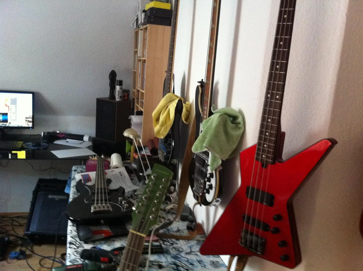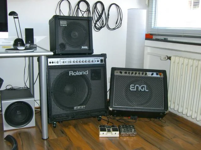 Ich übe, wenn's verstärkt sein soll, über 'nen Bass Micro Cube RX ... Das reicht mir auch noch locker!mit buddel... und hier noch meine Babys ...