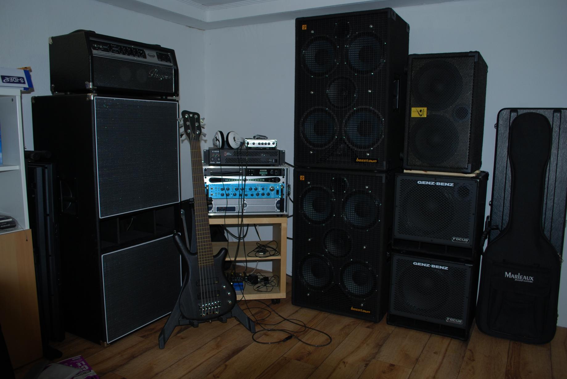 Oh, wie fein. DREI Basstown-Boxen vom Raffi?Alle Amps und Boxen mal an einem Fleck zu Hause wegen Bandauflösung...