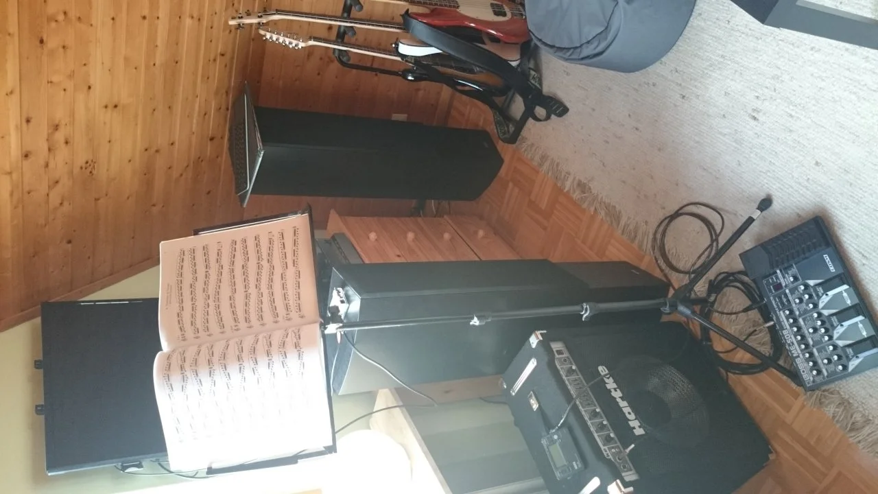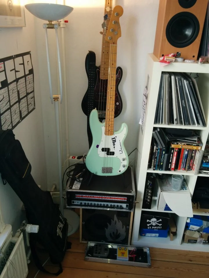 ich stell mir gerade vor, wie das mit papierwänden wäreie kleine Phil Jones Combo mit 100W ist zwar nicht der Brüller, reicht aber aus, die Nachbarn zu quälen...