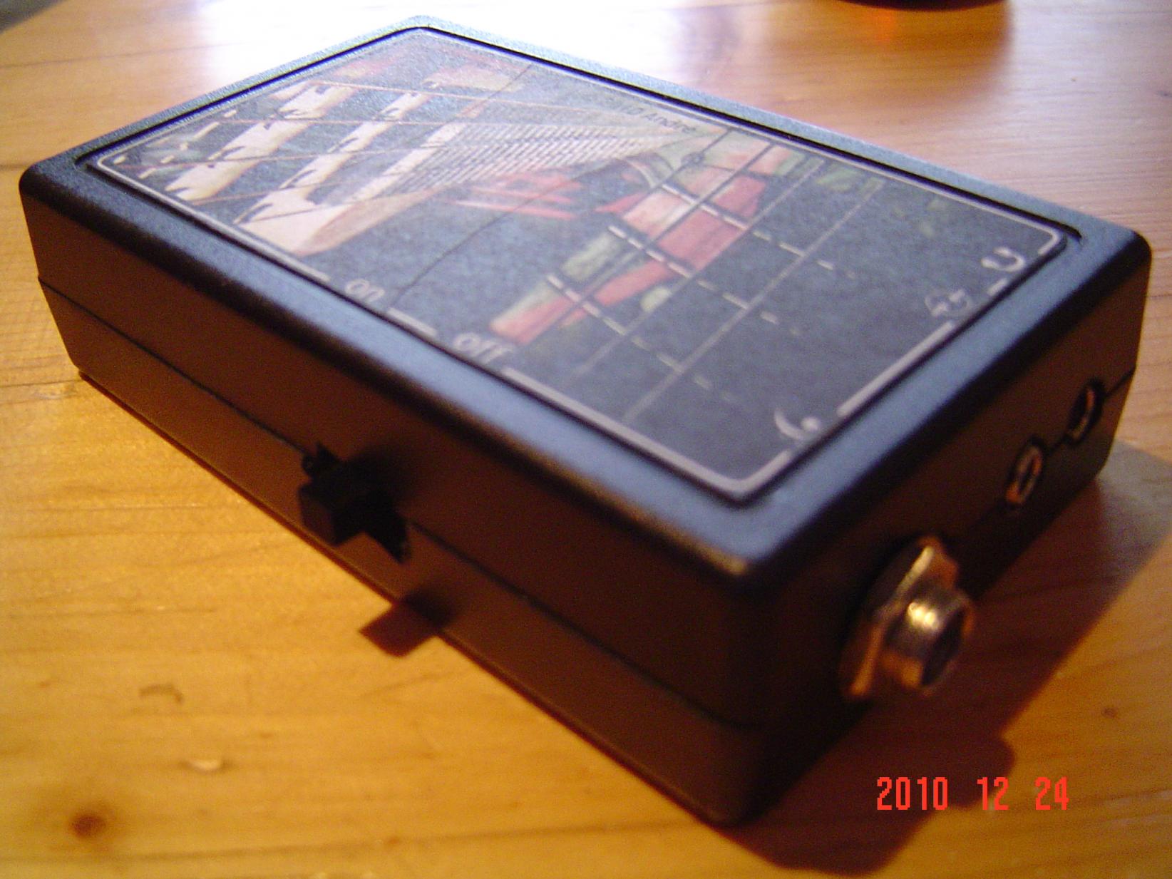 Das ganze schien alles gut zu laufen. Die Test hat die Schaltung alle bestanden und es sieht alles einigermaßen i.O. aus. Also Bass und spielen.....und nix kommt. Also ausgesteckt und an Mischer gesteckt.....funktioniert. Noch mal Verstärker.....funktioniert nicht. Schlecht! Also mp3-Player ran und.....funktioniert. Blöd! Zwar sind meine riesigen Sennheiser Kopfhörer am Handy auch super laut, aber Bass hör ich trotzdem net