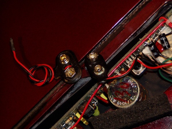 Nee, eine externe Stromversorgung funktioniert mit einem Stereo-Klinkenkabel; dann muss man intern nur noch den Batterieclip brücken (s. Bild: zweiter Batterieclip, bei dem die schwarze und rote Litze miteinander verlötet sind) und braucht extern eben eine kleine "Kiste", in der die Stromversorgung sitzt und das Audiosignal weitergegeben wird.