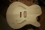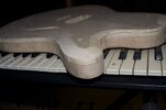 Nun hab ich endlich mal den Body halbwegs fertig. Der Fräsfehler ist beseitigt, alle überstehenden Kanten sind weggeschliffen und die Kante ist stellenweise glatt wie ein Babypopo: