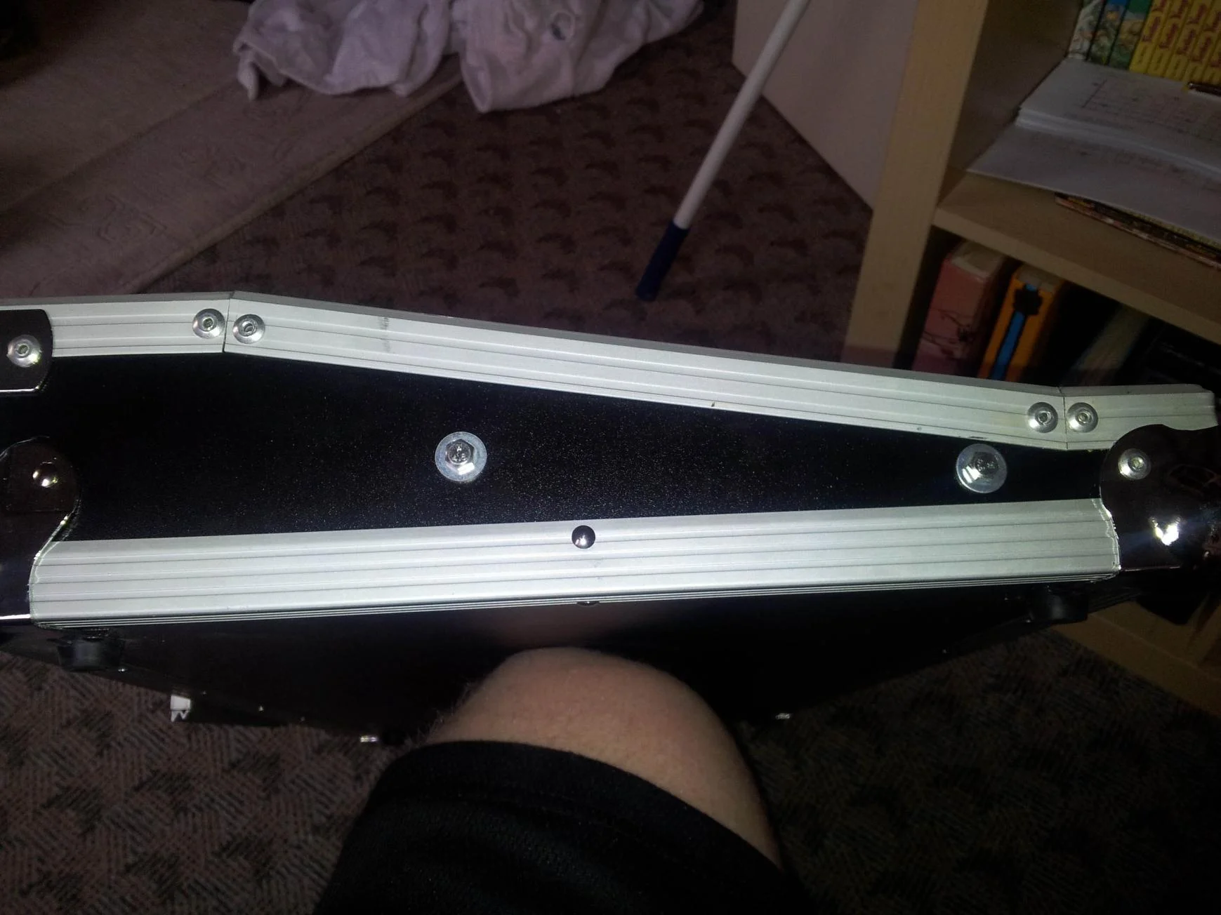 diese wurden gebohrt und in den eingebauten, doppelten boden geschraubt, sodass in der mitte, unter den aluleisten ein frairaum für kabelverlegung entsteht. das brachte ein kleines problem mit sich, dass ich jedoch schon vorher geahnt habe...