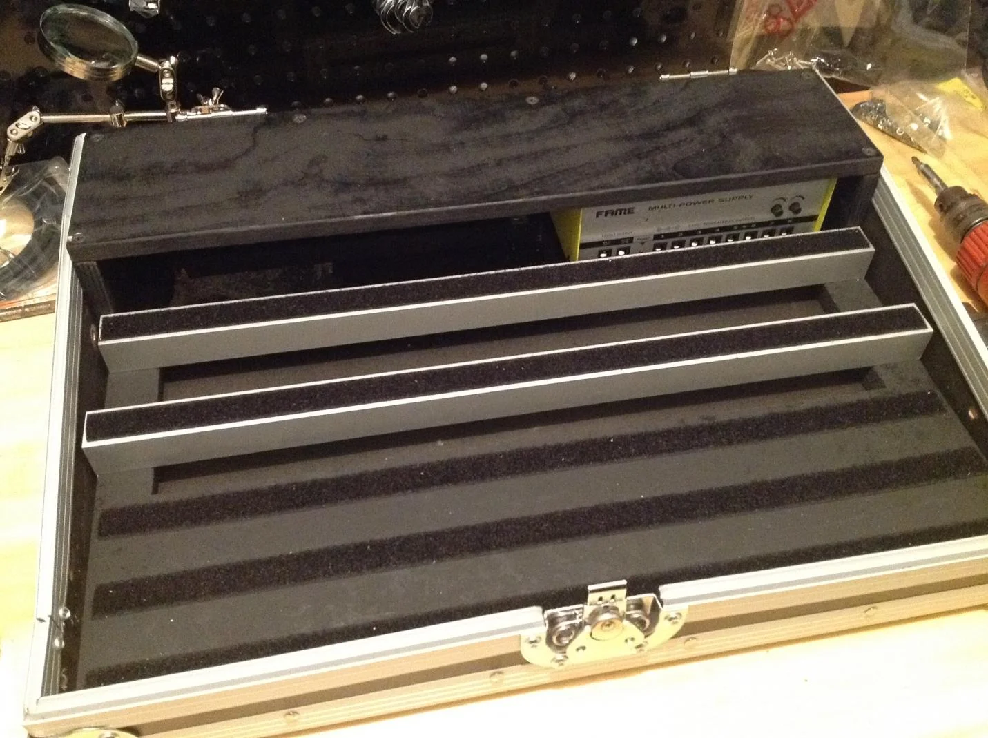 vor einiger zeit habe ich bilder gesehen, wie mischpult cases erfolgreich zu pedalboards umfunktioniert worden sind und war von der idee angetan.