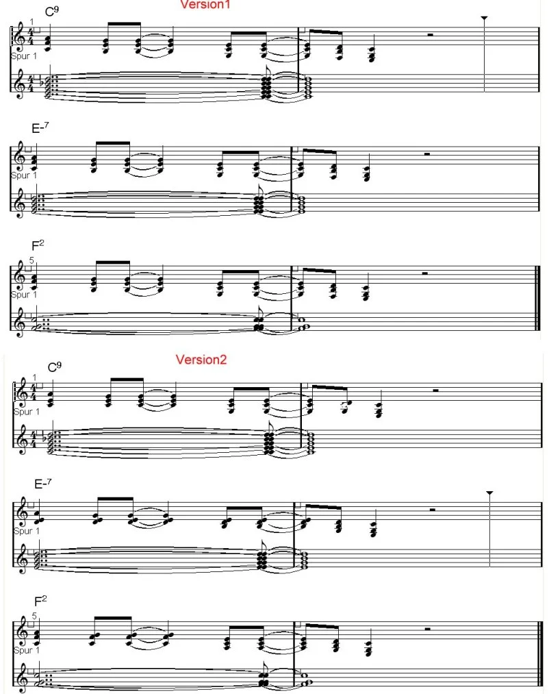 Ich würde doch eher die Begleitstimmen auf einem Akkordton lassen, zumindest an den