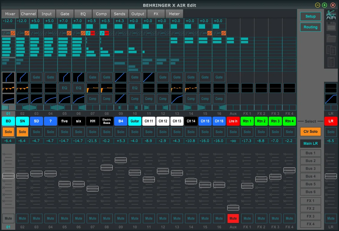 Auf der negativen Seite steht, dass ganz wichtige Elemente zurzeit nicht abgespeichert werden können. Ein paar Beispiele: Ich habe die Kanäle für meine Band entsprechend gelabelt, also Namen für die Kanäle eingetragen, sie farbig kodiert, die Einstellungen für Input, Gate, Compressor usw. festgelegt und mir vier Effekt-Plugins ausgesucht, von denen drei als Send und einer als Insert konfiguriert sind. Dann habe ich das Ganze als Scene abgespeichert. Danach habe ich die App geschlossen und neu gestartet, die Scene geladen, und es waren nicht mehr vorhanden: die Kanalnamen, die Kanalfarben, die Effektplugins (alle wieder auf default) und das Effekt-Routing. Auch das komplette Ein- und Ausgangsrouting war zurückgestellt. In der Praxis ist die App so nicht einsetzbar.