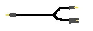 Auf der einen Seite eine männliche Miniklinke (3,5mm Stecker) und dann ein Y-Kabel das in eine männliche Miniklinke und einen weiblichen Miniklinken Adapter mündet.