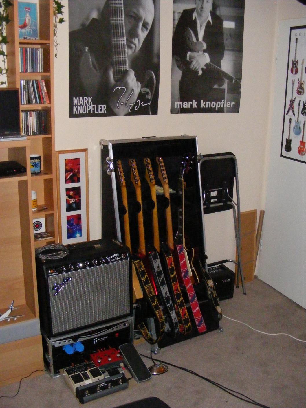 Parker, 2x Squier Strat, Yamaha, Ibanez, Godin, 2 Gibson LP, Luxor LP Custom, Schecter, LTD Bass (Reihenfolge stimmt nicht)