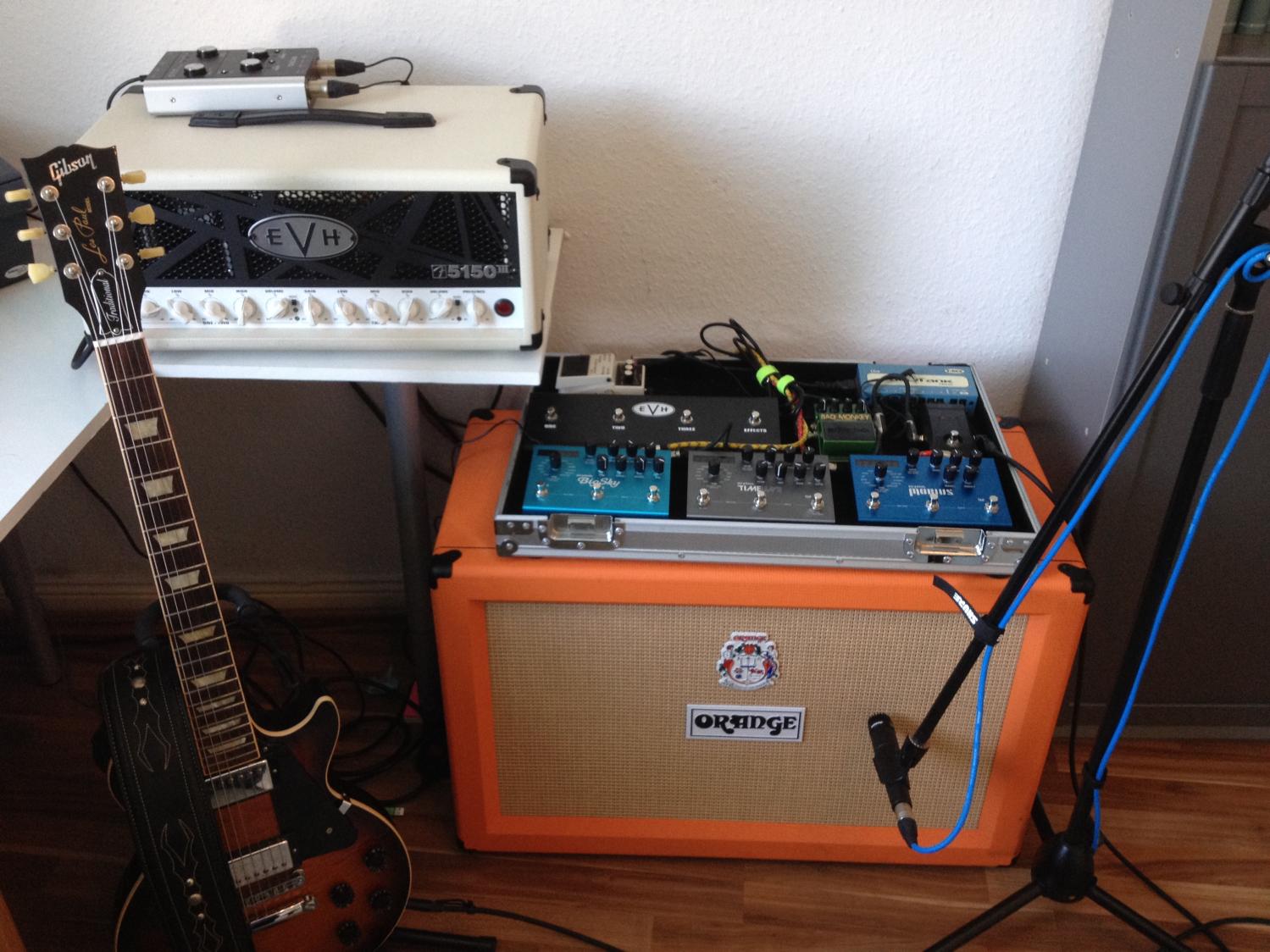 Mein neues home/proberaum Besteck , nach Gründung eines zweiten Projekts musste die 4x12 gehen und wurde durch die orange 2x12 ersetzt.