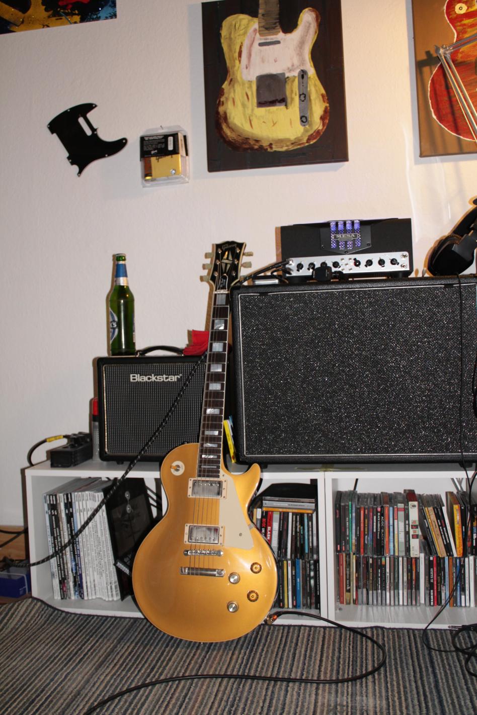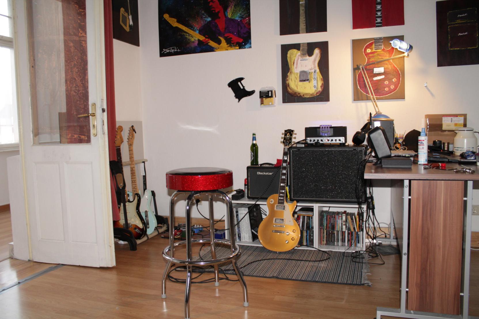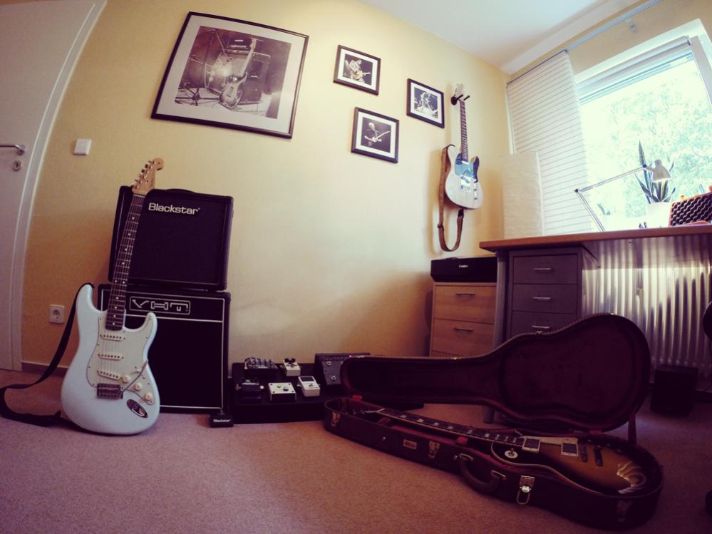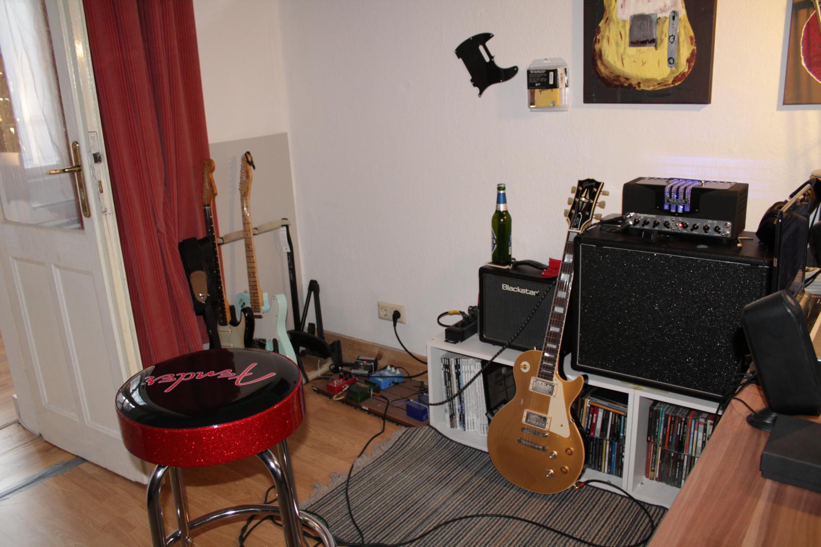 Mittlerweile ist es wirklich wieder eine Übungsecke, da der Schreibtisch nun neben die Amps gezogen ist.