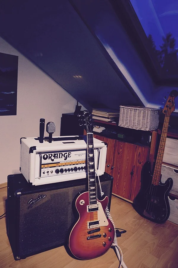 Ibanez TSA15H + Palmer 1x12" mit Greenback was mir super gefällt. Und wenn ich mal das Zimmer räumen muss oder auf'm Balkon chille abends, kommt der Vox AC4 mit unter'n Arm