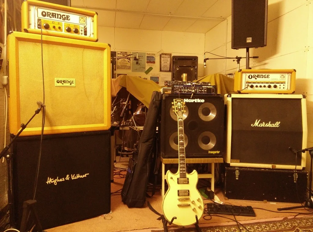 Yamaha keine mehr im Werkszustand. Ich habe überall die Elektronik getauscht, und bis auf die Bausatzstrat auch die Tonabnehmer. Die Harley Benton ist sogar noch mehr gemoddet: selbstklemmende Gotoh Stimmmechaniken, neuer Faber Saitenhalter, Brücke, Bolzen und Einschlaghülsen. Außerdem ist noch ein Shadow Tonabnehmer-Rahmen mit eingebautem Stimmgerät drauf. Bis aufs Holz und die Plastikteile habe ich an der Gitarre also alles gegen bessere Teile ausgetauscht!
