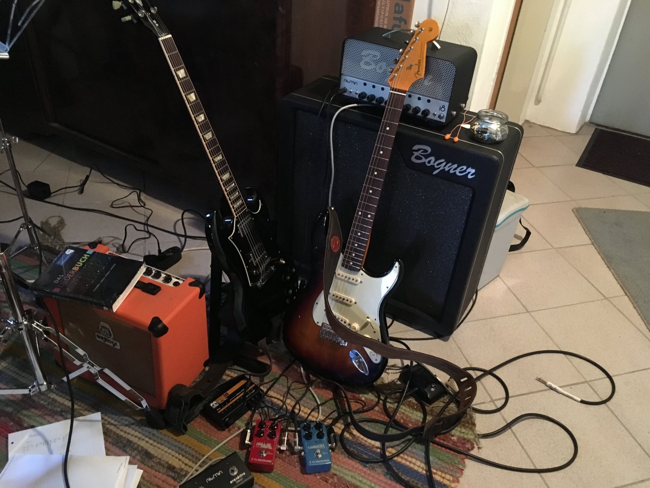 Und die Strat ist Little Miss Sunshine, meine erste Strat. Ausnahmsweise keine Fender, sondern eine Squier.![]()