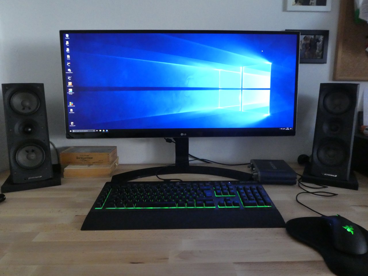 Die Auflösung: links neben dem Monitor, der schwarze Kasten mit dem Audiointerface in blau/silber drauf ;)