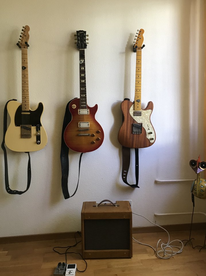 Das heute gekaufte blaue Ding rechts im Bild ist Schuld, dass ich mir fast eine Sehnenentzündung erspielt habe... Geil klingt das...