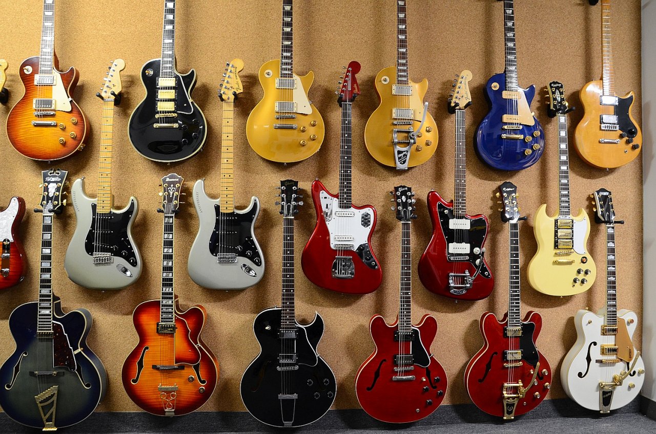 Hier ein Teil meiner Übungsraum-Gitarrenwand (diesen herrlichen Anblick möchte ich nicht missen).