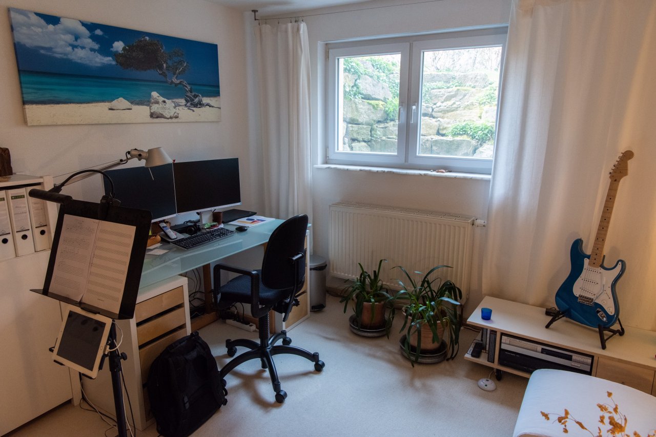 Home Office ist gemein, wenn die Gitarren hinter mir stehen.