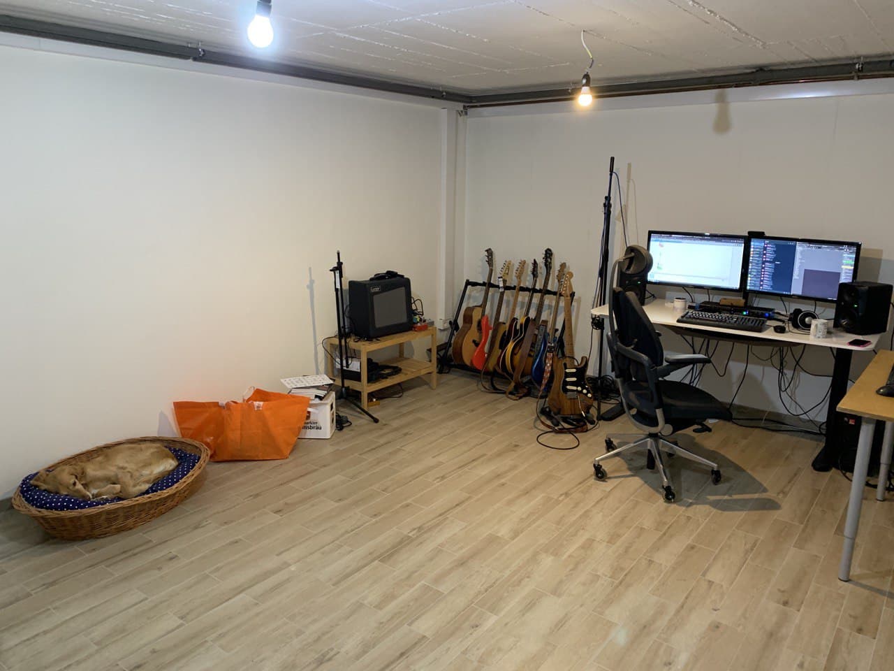 Das ist ja ein Vizsla. Genau so lag unserer auch im Korb. Unserer lebt leider nicht mehr...So, ich bin am Wochenende mit meinem Büro/Musikzimmer endlich umgezogen, jetzt bin ich ofizielles Mitglied im Club der Kellerkinder