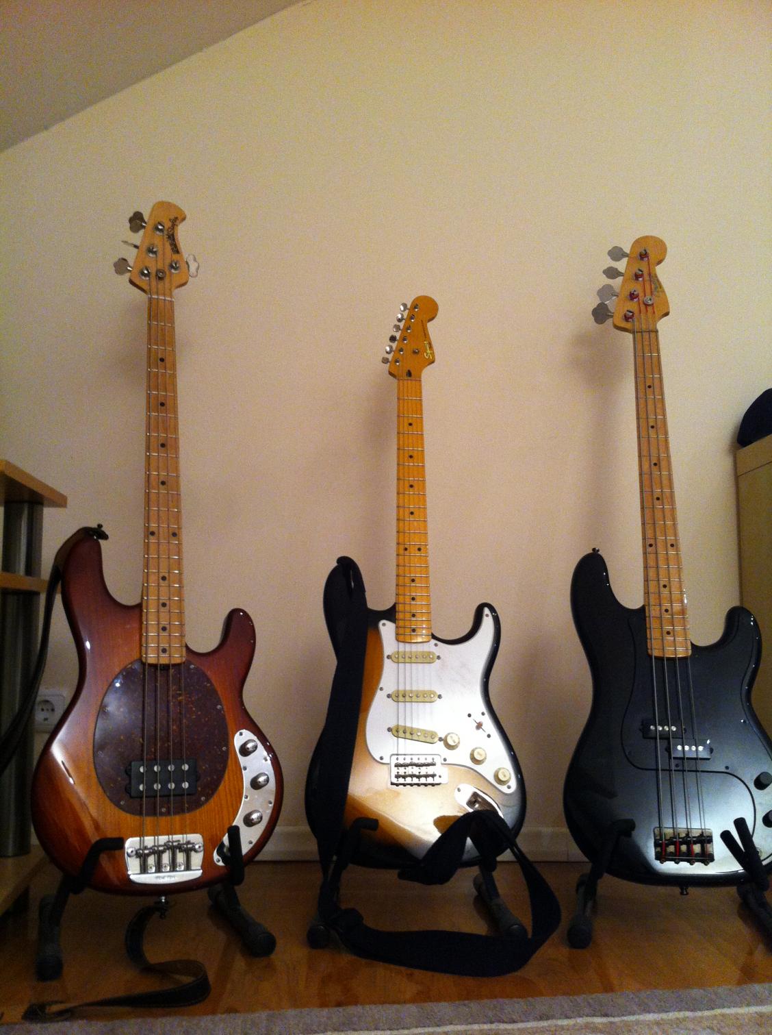 Ne ne, ich hab meine 6-saitige SG für mein Black-Metal-Studio-Duo-Projekt passend zu meinen Bässen auf C in Quartstimmung runtergestimmt. Am deutlichsten war das Problem übrigens bei der blanken .020er "G"-Saite, aber die ist auch von der Intonation her jenseits von grenzwertig, daher steig ich da jetzt auf nen 7er-Satz (ohne hohe E-Saite dann) mit umwickelter .024er "G"-Saite um. Hui, was ist den da mit der Kopfplatte los? Recht eigenwillige Saitenführung!