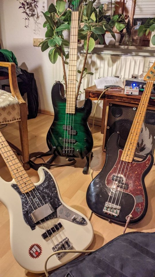 Dankeschön. Der Ray in diesem Gremlin Green Sparkle ist der Hammer. Der glitzert so geil und lässt sich super bespielen. Einfach ein toller Bass. Natürlich sind das die anderen auch....Sehr schöne Sammlung! Mag die nicht-fender-fender. Und der Ray ist mega!!