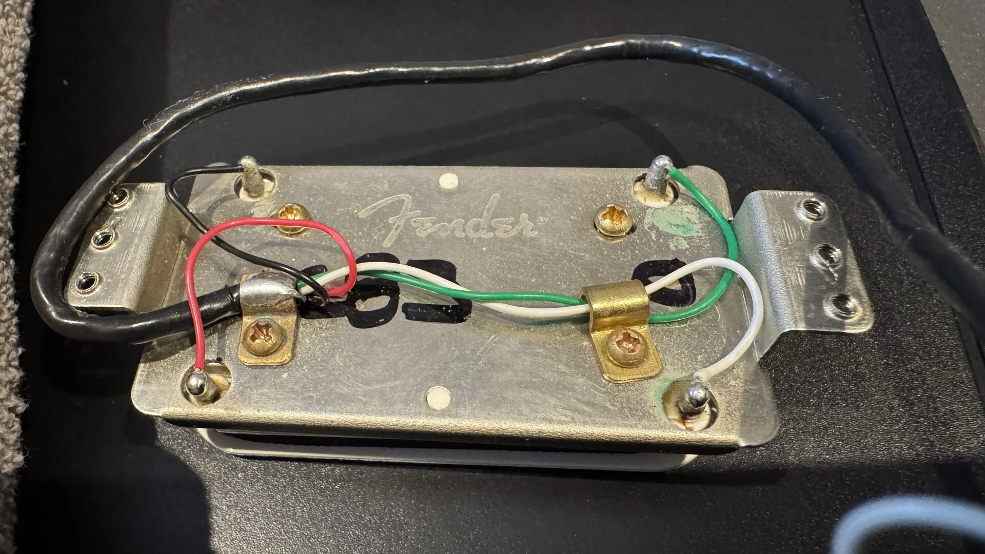 -Schwarz auf den 5-Wege-Schalter, an den Anschluss, an dem der schwarze Draht vom Fender-HB angelötet war