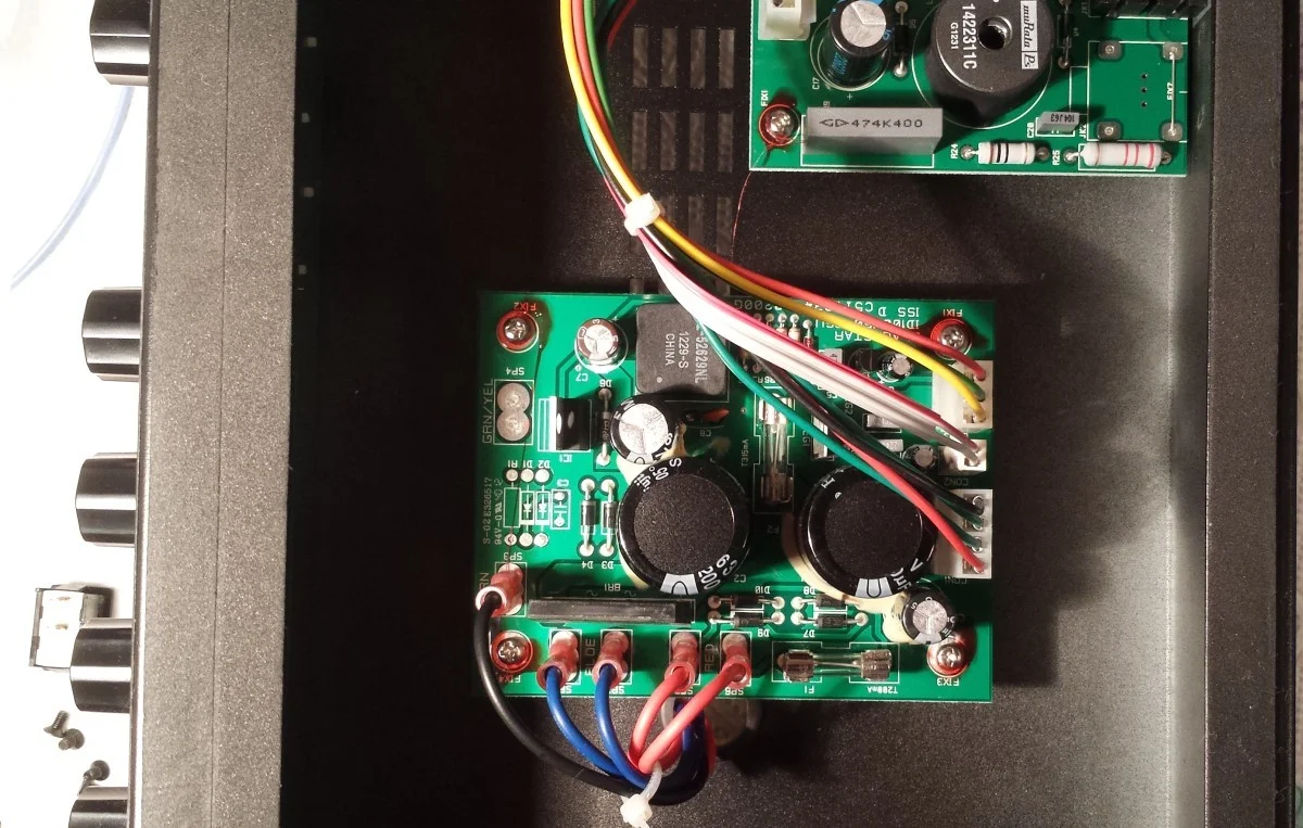 Ein konventionelles ungeregeltes Netzteil für die Endstufe sowie Festspannungsregler für die restliche Elektronik.