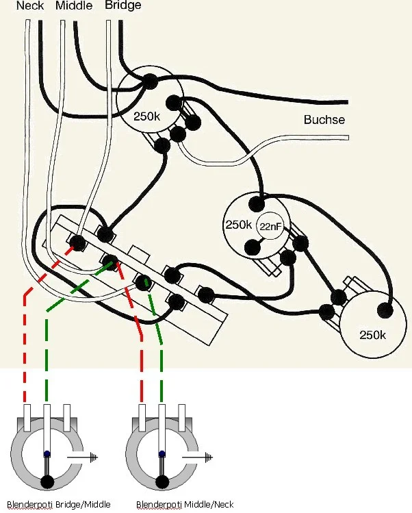 Wie kann ich das Blenderpoti (bei einem 5-fach Standard-Pickupschalter) anschließen,
