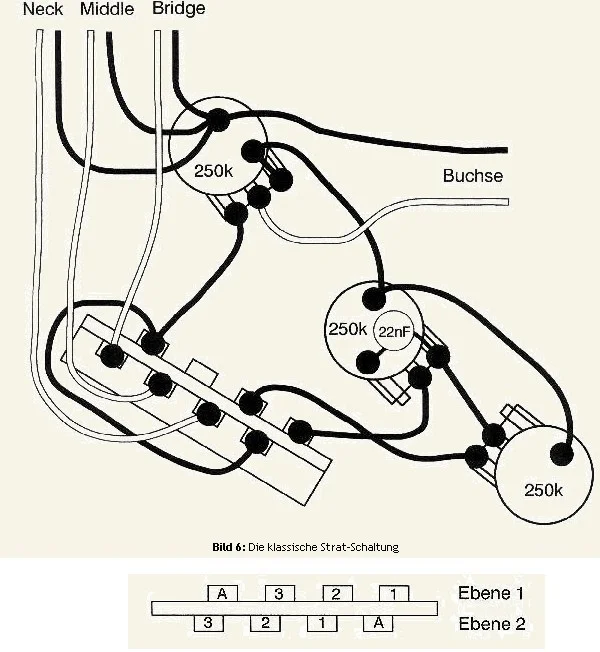 meine Frage bezieht sich auf die Modifikation einer Standard-Strat-Schaltung (mit 3 SingleCoils + 5-Weg-Schalter).