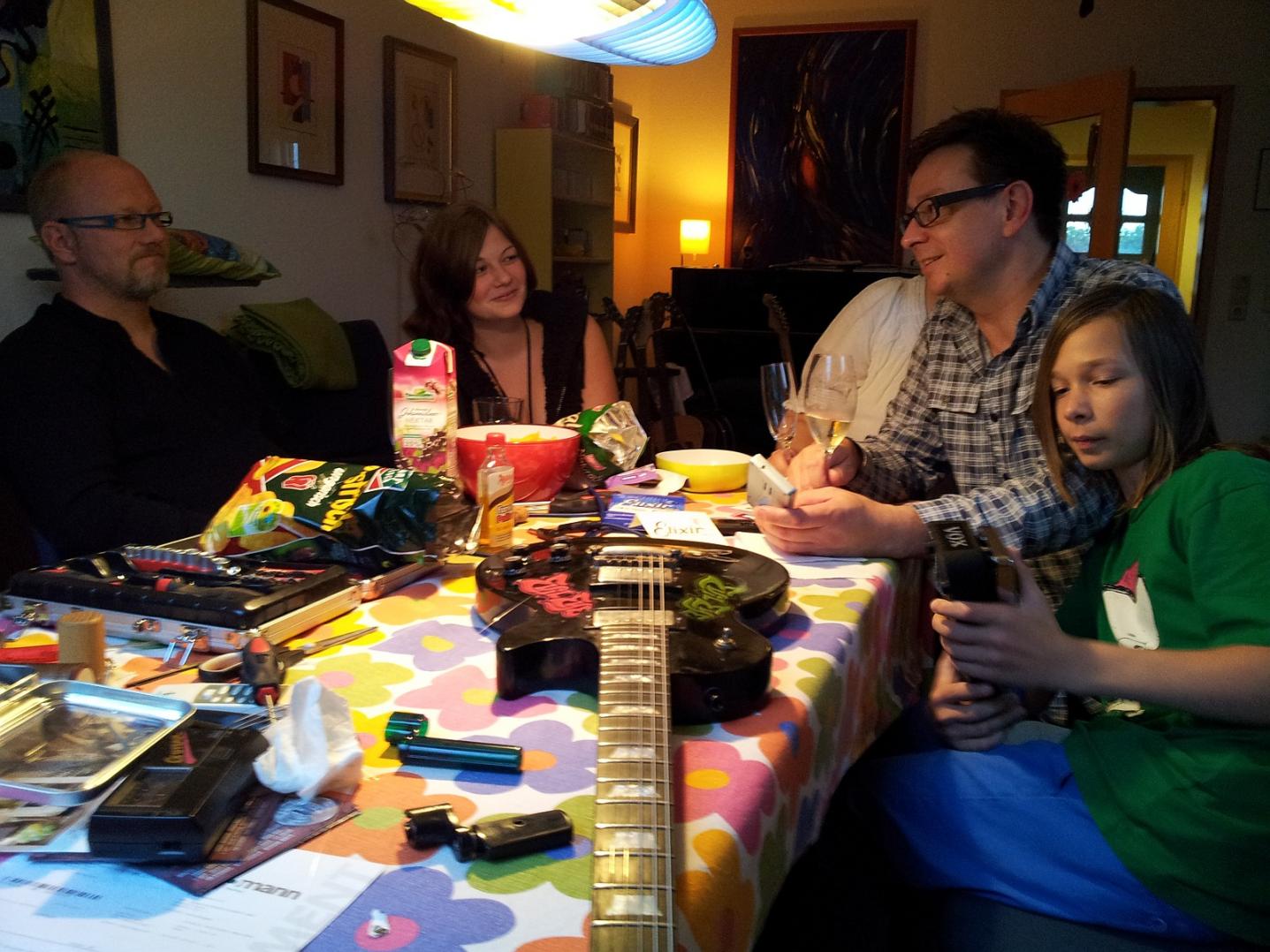 Ja so war das - sehr entspannt - und schön beim Sekt und in entspannter Runde 2 Gitarren wieder glatt gezogen (Saiten, putzen, Hals nachstellen, oktavrein machen ...)